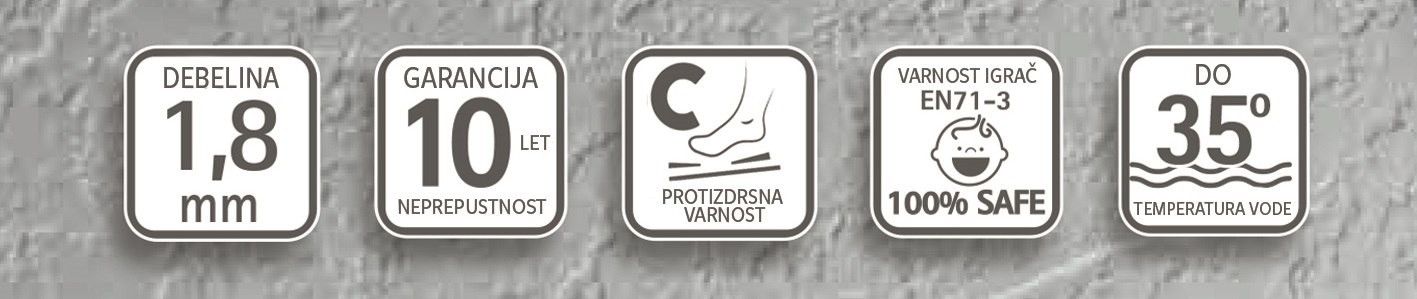 Bazenske folije z edinstveno elegantno površino in debelino 1,8 mm. Poseben mat premaz za čiste površine in preprosto čiščenje.