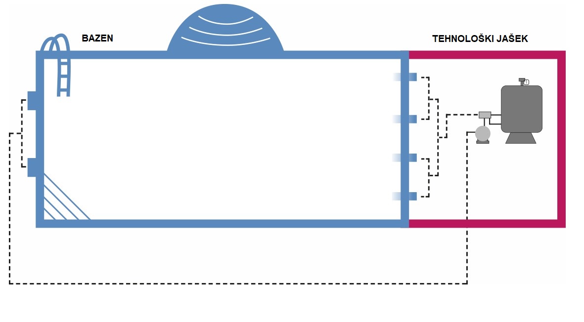Cevni material zadostuje, če je filtrirni sistem nameščen neposredno ob bazenu!